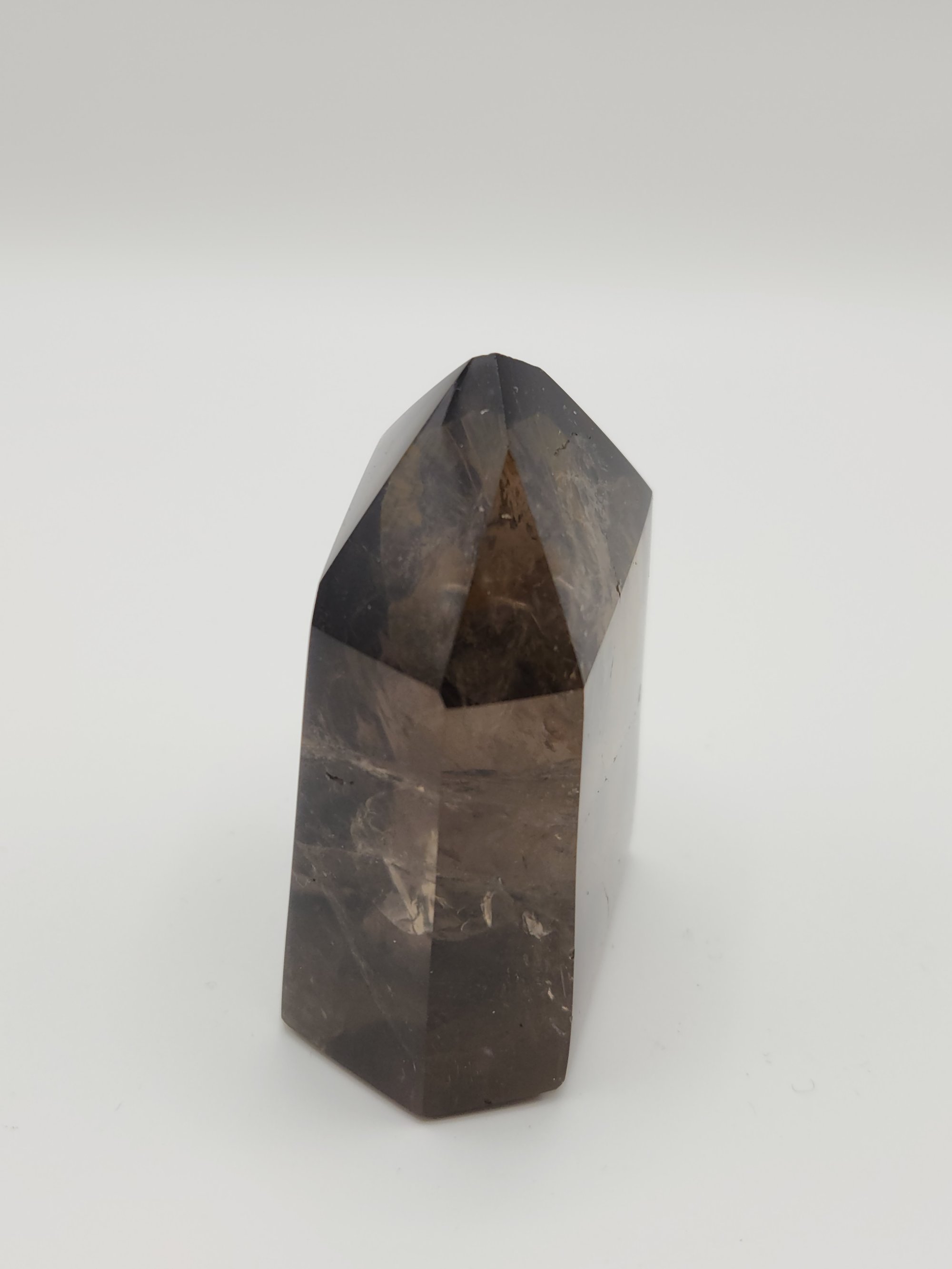 This natural smoky quartz point features deep, grounding color and smooth clarity. It weighs 4 oz and measures about 2.4" tall, 1.7" long, and 1.0" wide. A solid everyday crystal for stability, protection, and calm energy in any space.